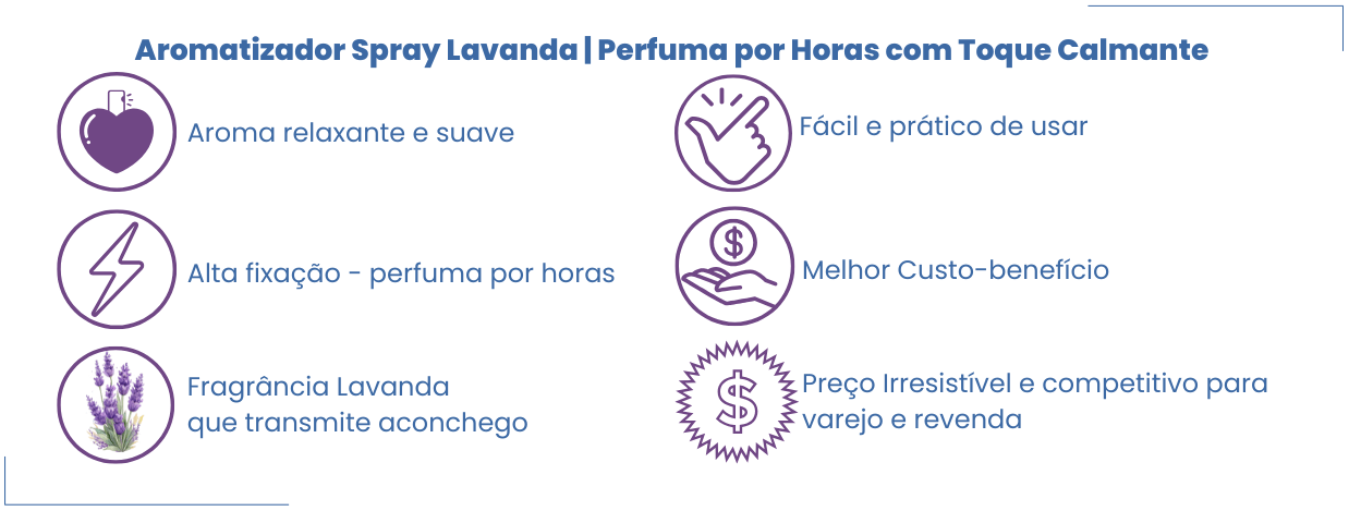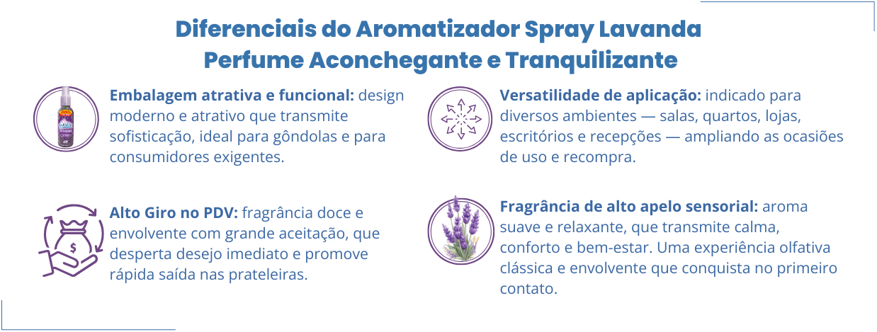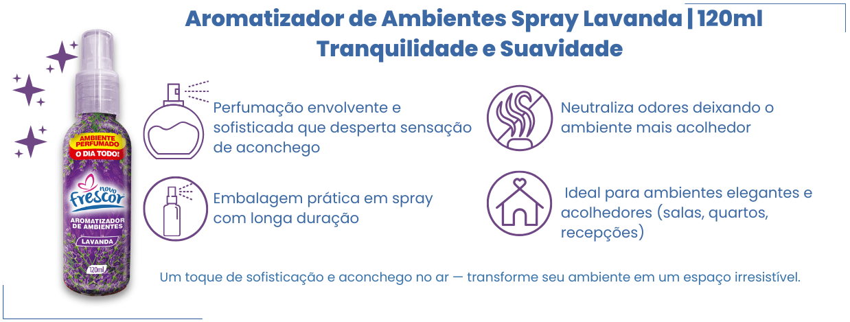 Aromatizador Spray Lavanda 120ml | Tranquilidade e Frescor com Excelente Giro no PDV
