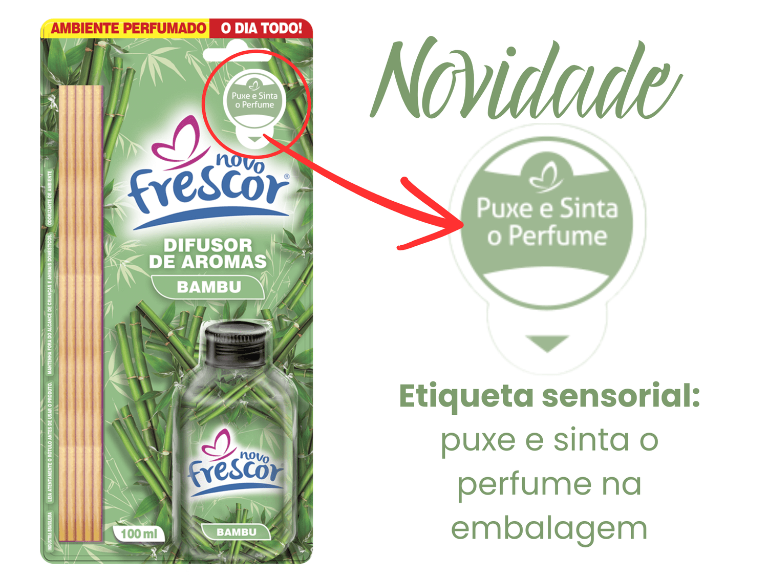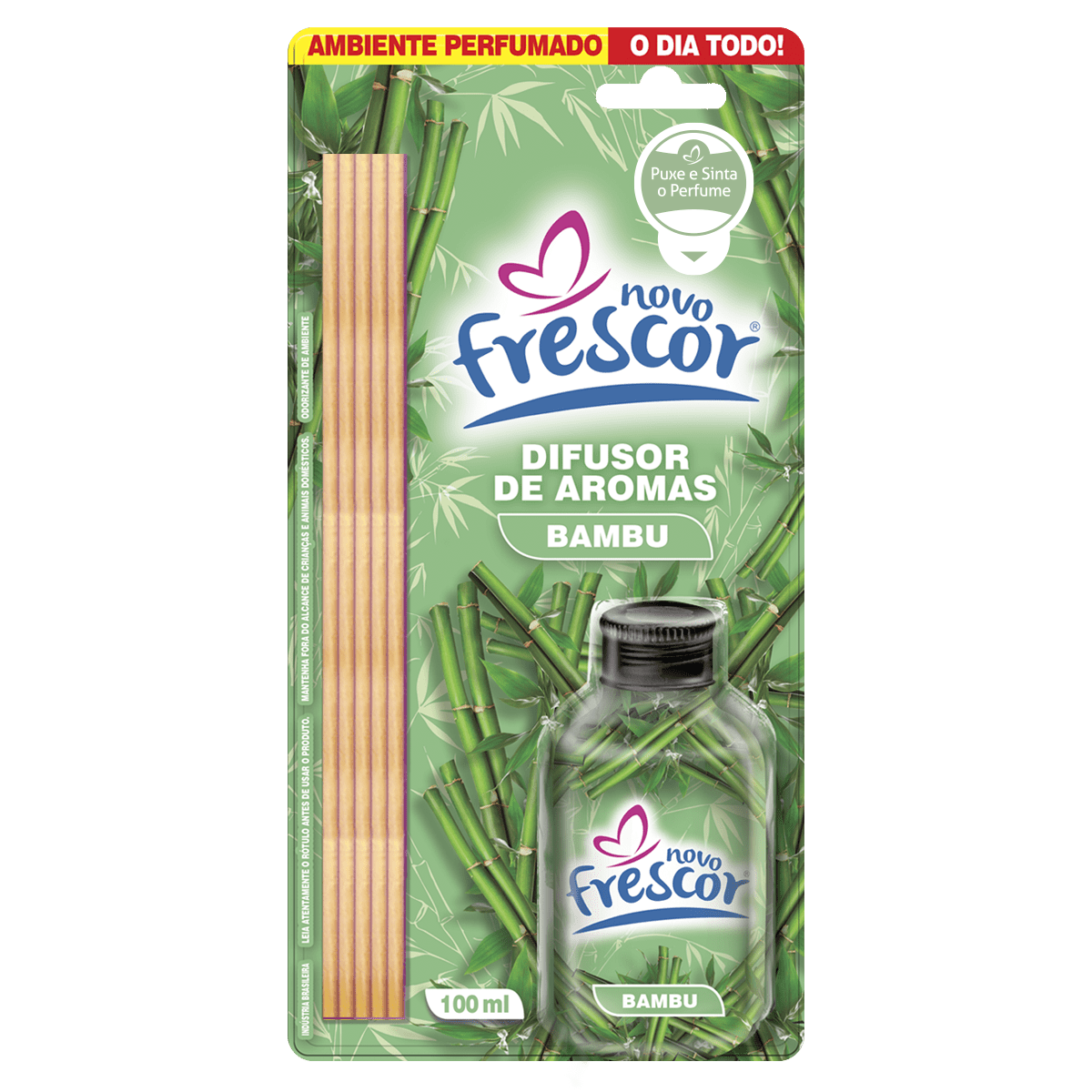 A linha de Difusores de Aromas Novo Frescor inclui também: Bambu, Capim Limão, Chá Branco, Cheirinho de Bebê, Cereja & Avelã, Cravo & Canela, Floral, Lavanda, Frutas Vermelhas, Laranja e Marine.
