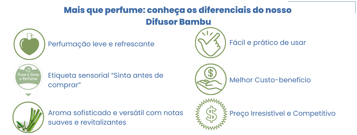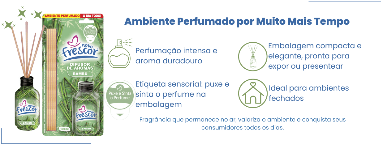 Com alta aceitação no varejo, perfumação duradoura e design contemporâneo, o Difusor Bambu é um grande aliado das vendas — e um item indispensável no mix de produtos de qualquer distribuidor.