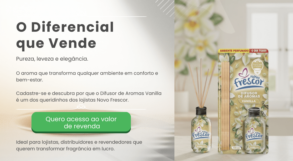 Desenvolvido para unir experiência olfativa, estética moderna e rentabilidade, o Difusor de Aromas Vanilla Novo Frescor transforma o ponto de venda em um espaço mais convidativo, atrativo e lucrativo.