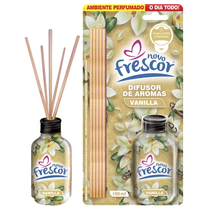 O Difusor de Aromas Vanilla chega com toda a assinatura Novo Frescor — uma marca presente em milhares de PDVs e reconhecida por unir: