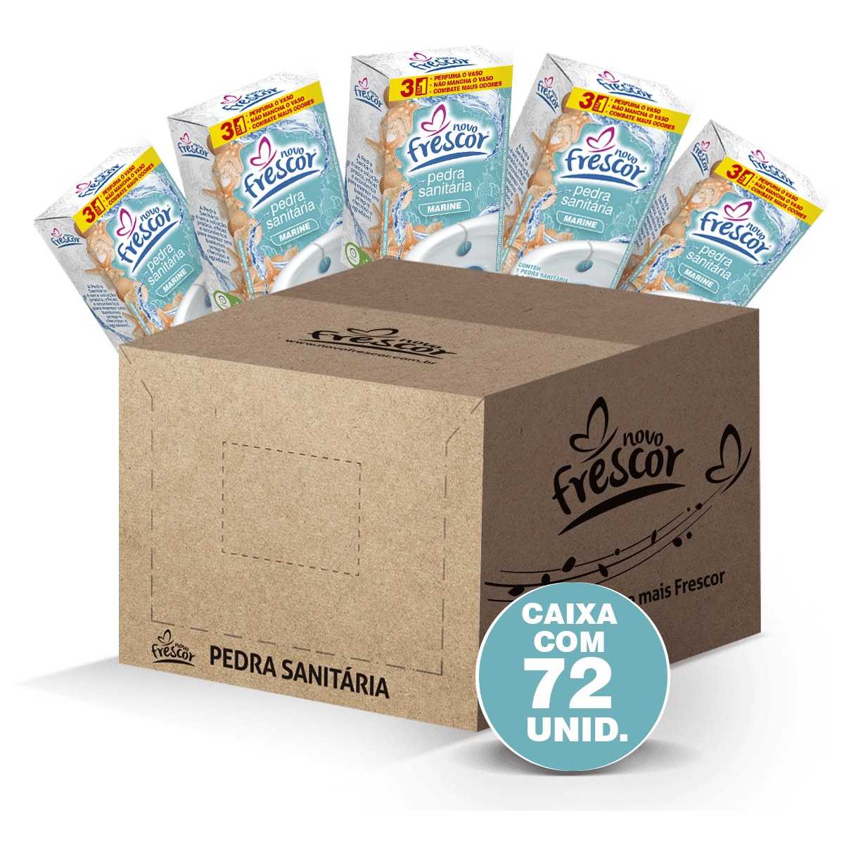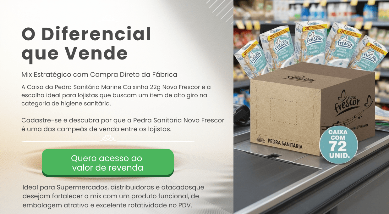 A Caixa com 72 unidades da Pedra Sanitária Marine Novo Frescor – Caixinha é a solução ideal para lojistas e distribuidores que desejam abastecer o estoque com um item de venda constante.