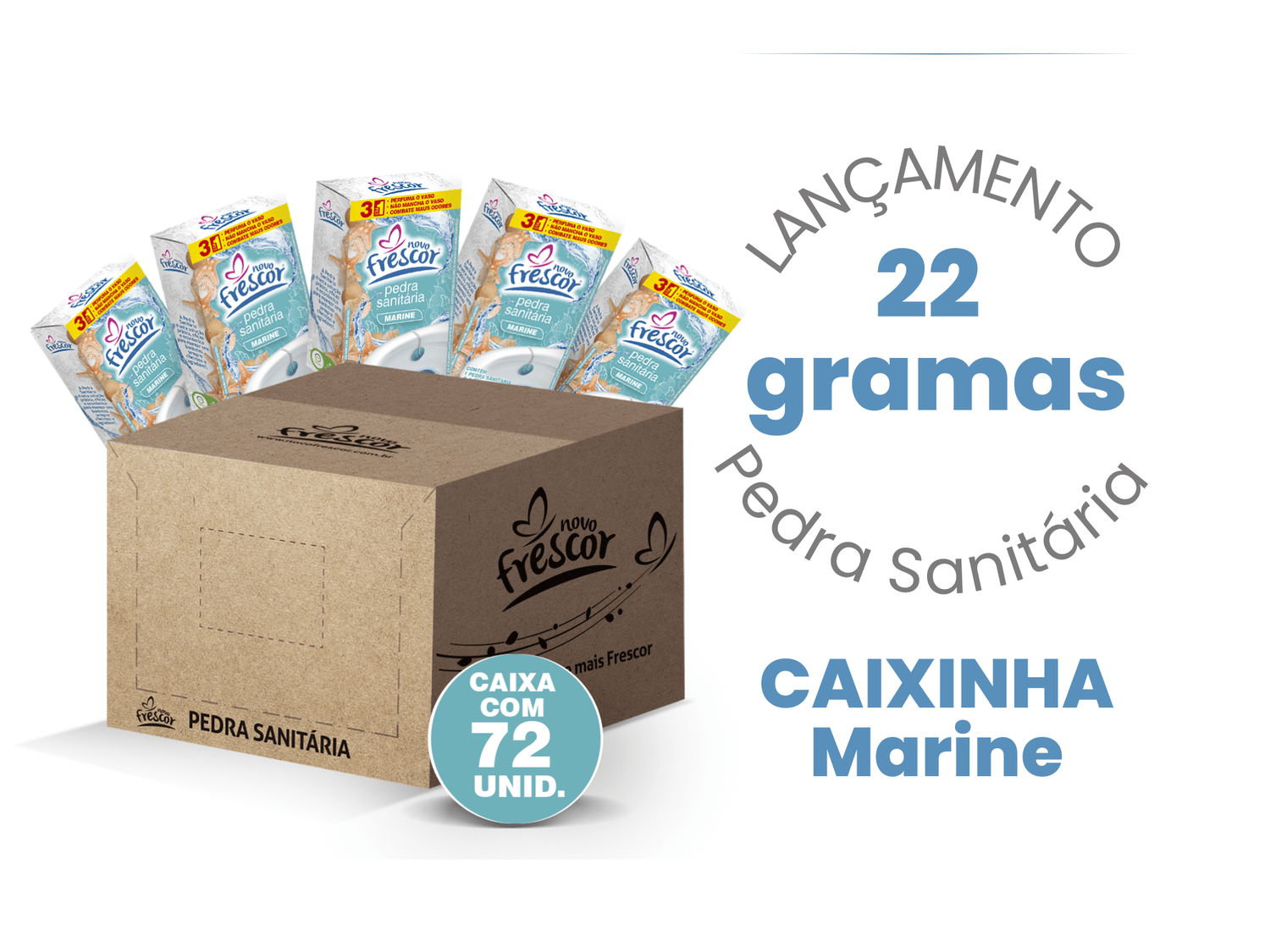 A Caixa com 72 unidades da Pedra Sanitária Marine Novo Frescor foi pensada para lojistas e distribuidores que trabalham com itens de alto giro.Com perfume inspirado no frescor do mar, é um produto de demanda constante e recompra frequente.